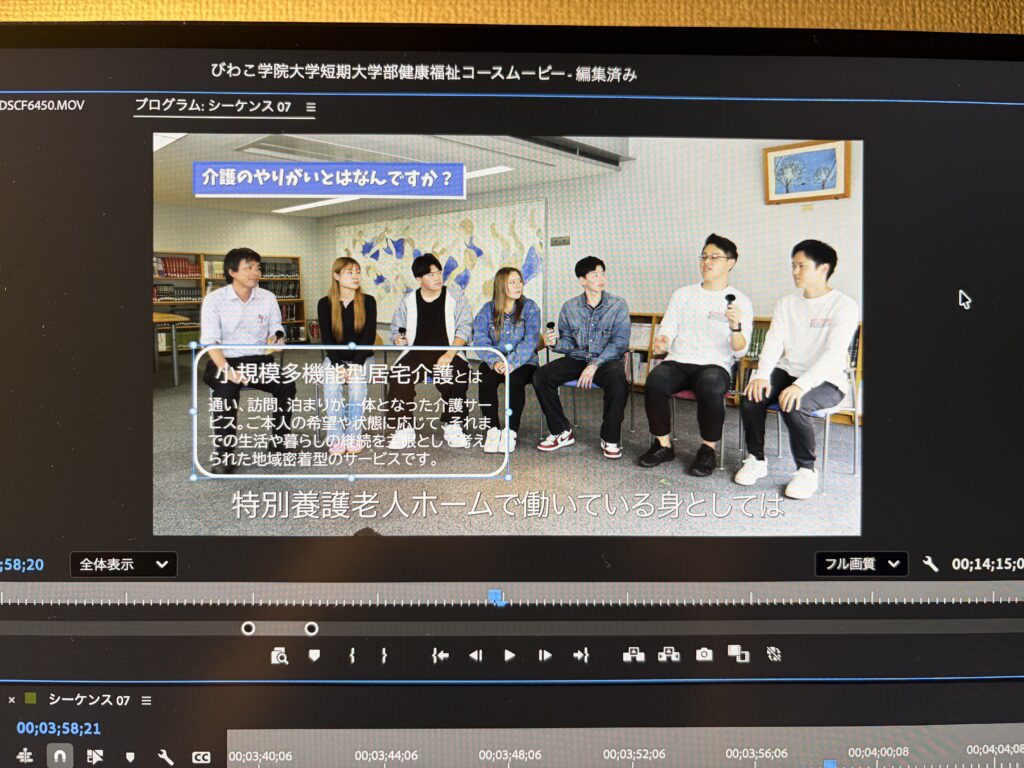 10回以上の作り直し、そして26分間という長尺動画へのフル字幕入れ。福祉のことを知らない人でも見やすいように福祉用語には説明も入れました。