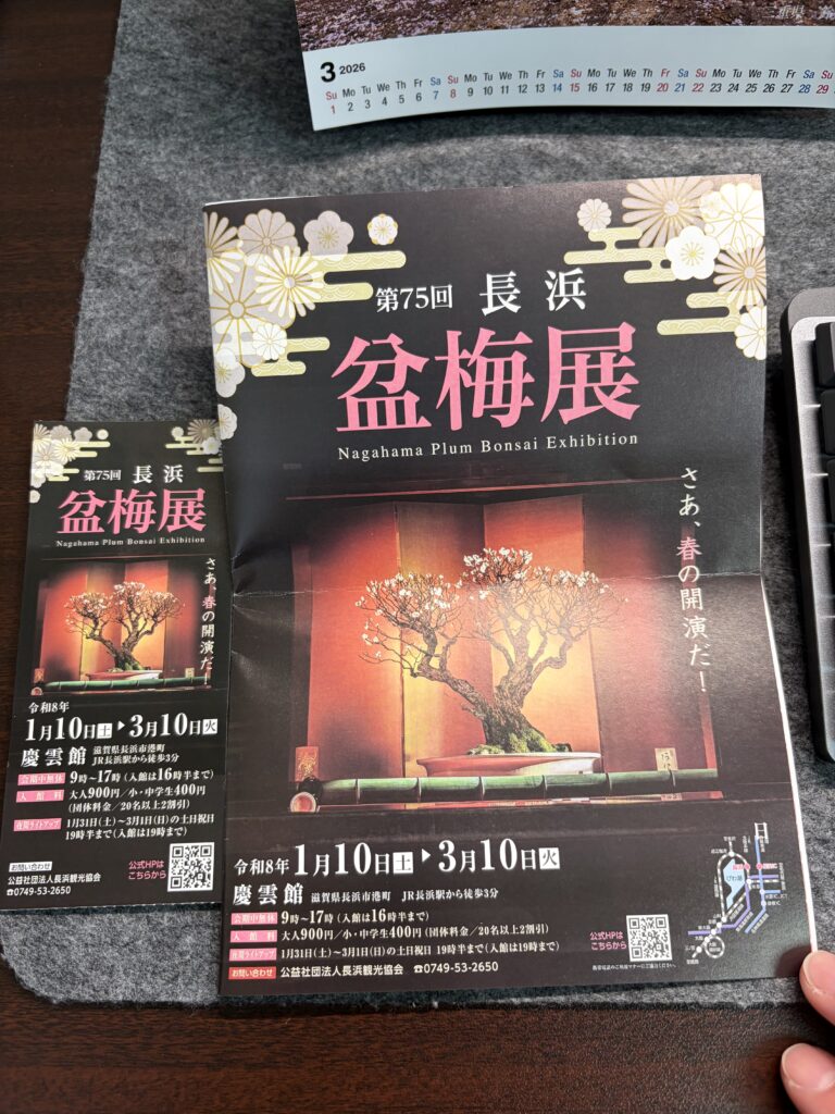 その後、車を走らせ長浜の「盆梅展」へ。 道中、無意識に携帯を探してしまう自分に、デジタルが染み付いた不安と苛立ちを感じた。けれど、その不便な「空白」に、ブログのアイデアが次々と溢れてきた。コンビニで買ったボールペンとメモ。そこに書き留める感情は、スマホのフリック入力よりもずっと重みがあった。